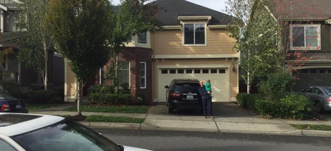 Nu började vi bli lite trötta och hungriga men vi tyckte att vi skulle hinna med hus nr 4 också innan lunch. Detta huset låg i ett lite mer ”överklass område” med en mycket större tomt, en helt otroligt fin utsikt över Lake Washington. Och hade vi varit ute för att köpa hus hade detta varit huset men för att hyra var detta inget för oss. Riktigt dåligt planerat inomhus, slitet och ofräscht, nästintill farligt för Sam med smala branta trappor överallt med bra klättermöjligheter och stor risk för att ramla och slå sig riktigt illa.