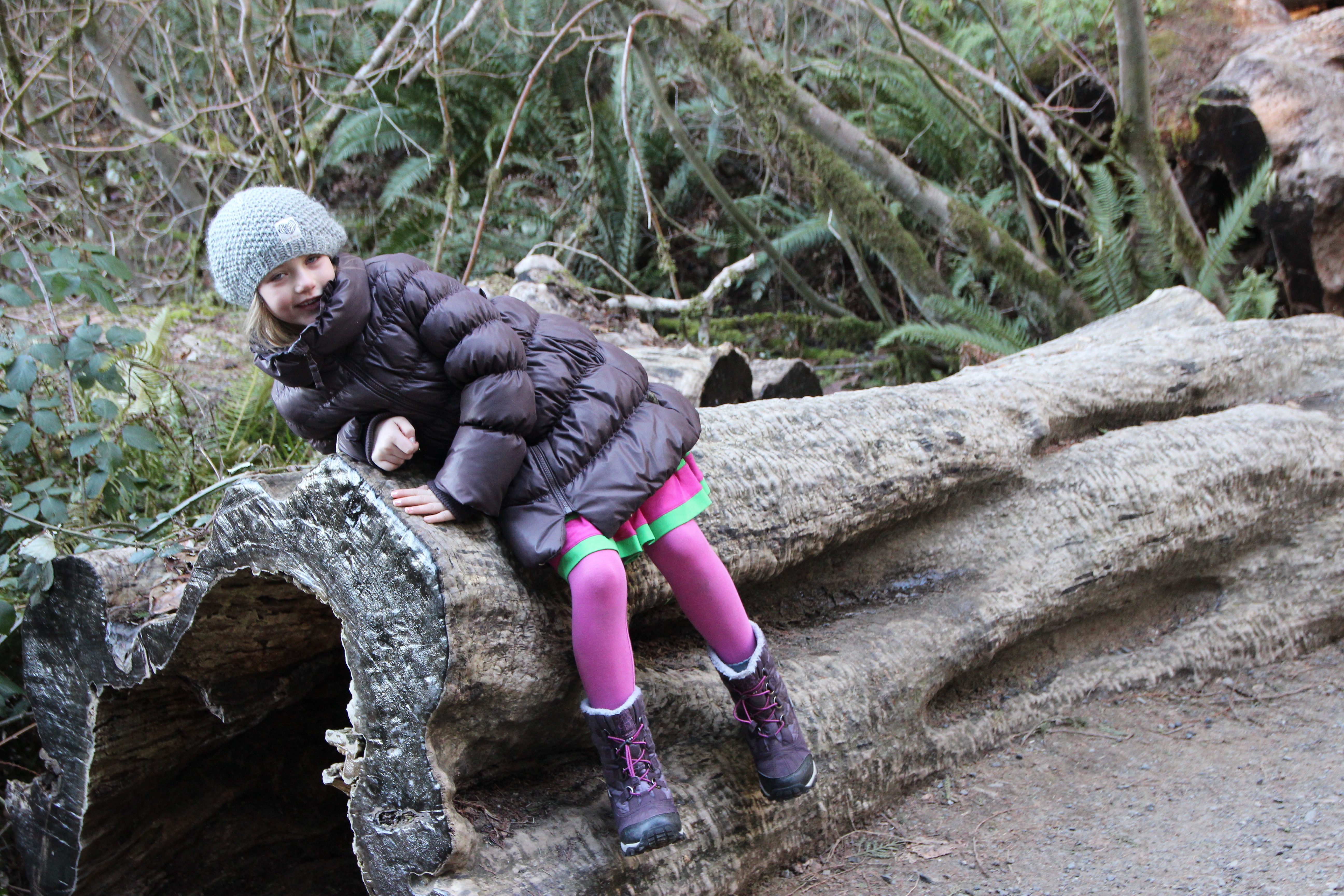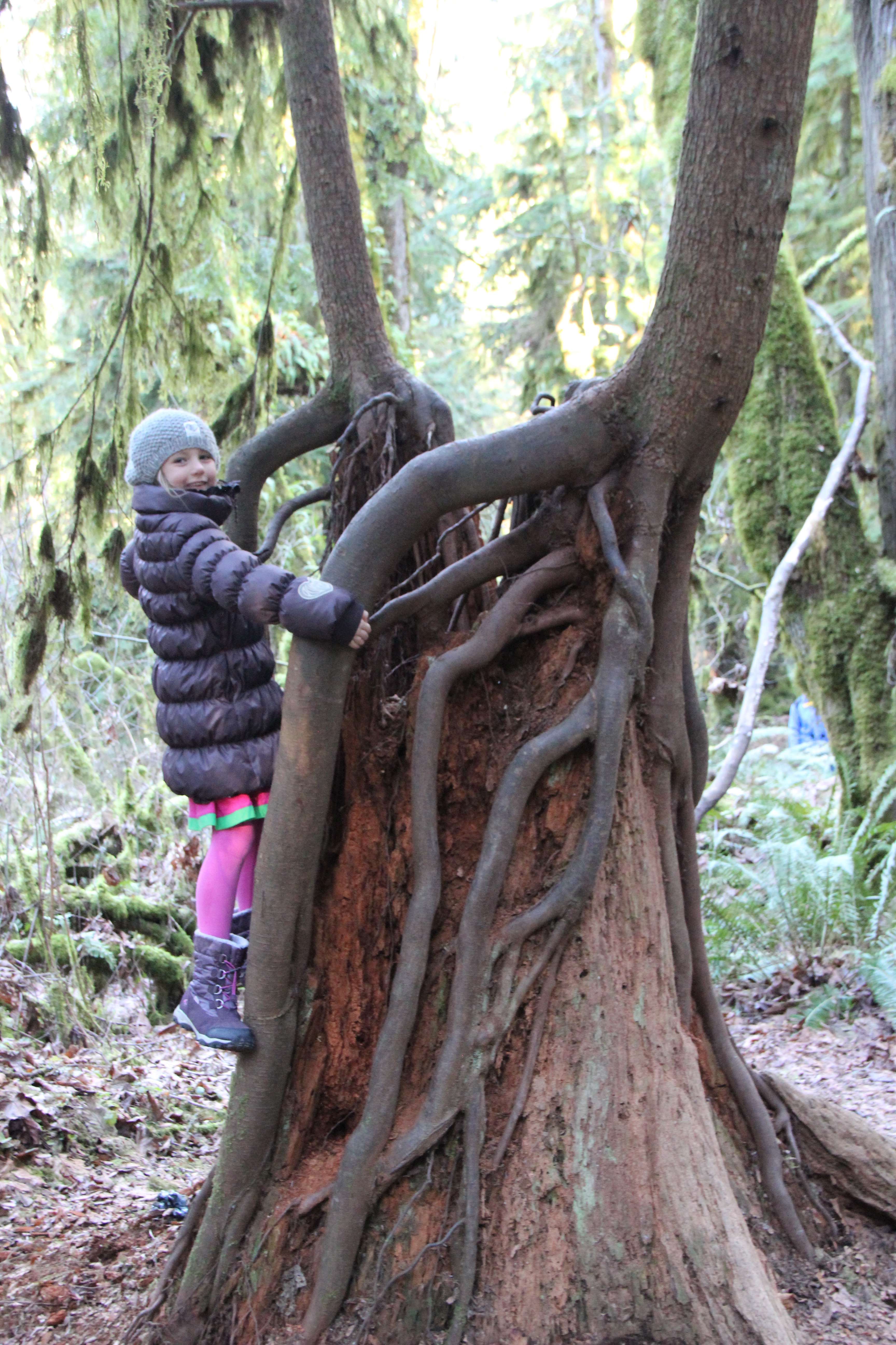 Vägen lutade väldigt brant neråt och naturen är så imponerande. Träden är så stora och höga och ser så annorlunda ut ifrån vad skogen ser ut som hemma i Sverige.